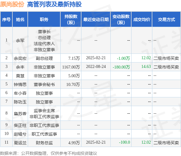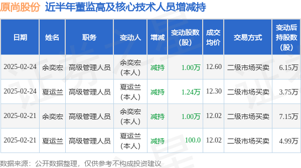 原尚股份近半年内的董监高及核心技术人员增减持详情如下: